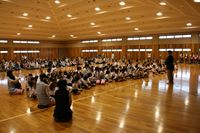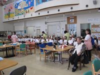 - 横山の吉香公園へ遠足に行く予定でしたが、あいにく天候が雨となりましたので、場所を総合体育館に移して小運動会の開催となりました。